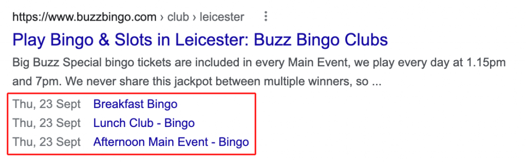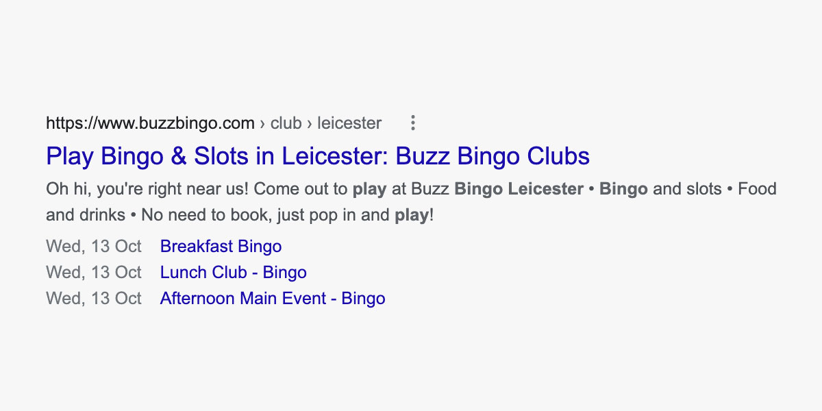 Another example above which we implemented for Buzz Bingo, showing the next available Events for their Club in Leicester.