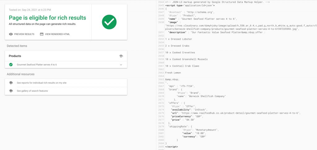 Below is an example of an Ecommerce website where we have integrated “Google Rich Results” markup, for a product page.